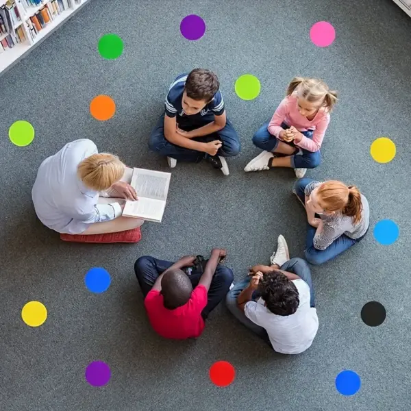 This collection of 32 carpet dot markers is an invaluable asset for any educational environment, each measuring 10.16 cm in diameter. Ideal for teachers to establish structured seating plans and to facilitate interactive games, these student-fixed dot markers come in a range of six inviting colors. Their multicolor design not only brightens up the classroom but also serves as a visual guide for young learners during activities and lessons. The dots adhere to carpeted surfaces with ease, ensuring minimal disruption and maximum engagement.
